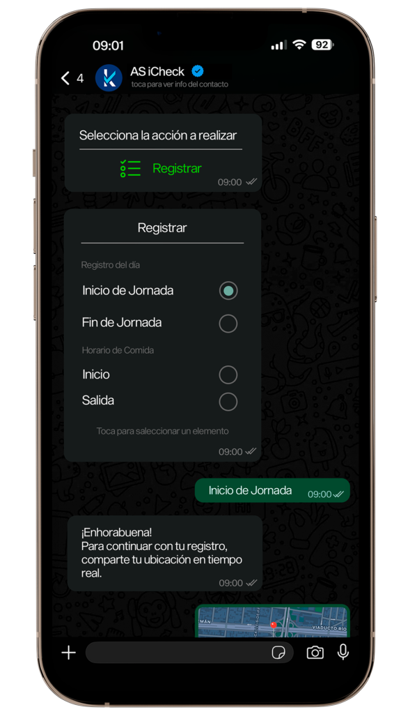 Después comparte su ubicación actual y una fotografía para confirmar que realmente se encuentra en la oficina o sucursal.